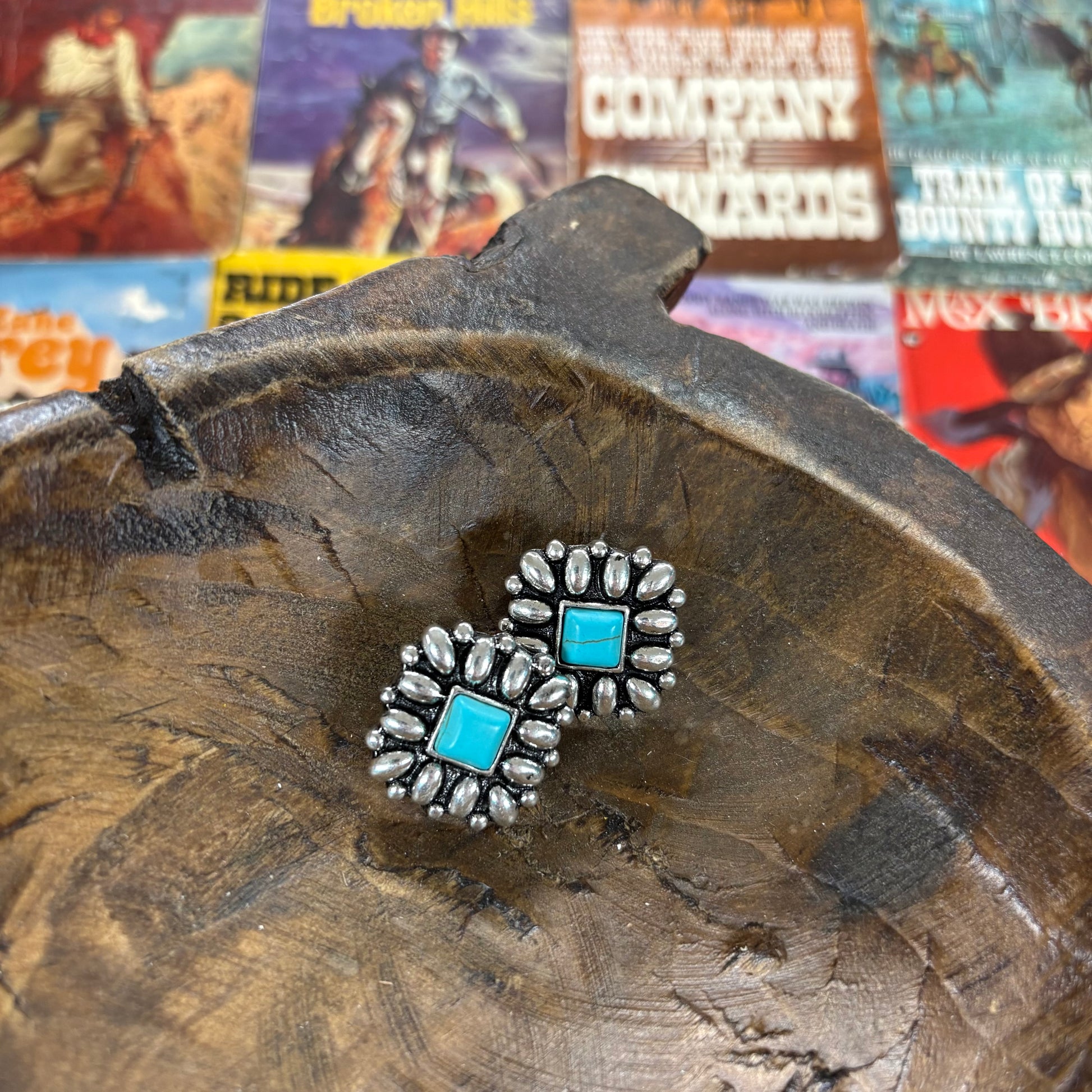 Square Turquoise Earrings with Square Center Stone - ATG