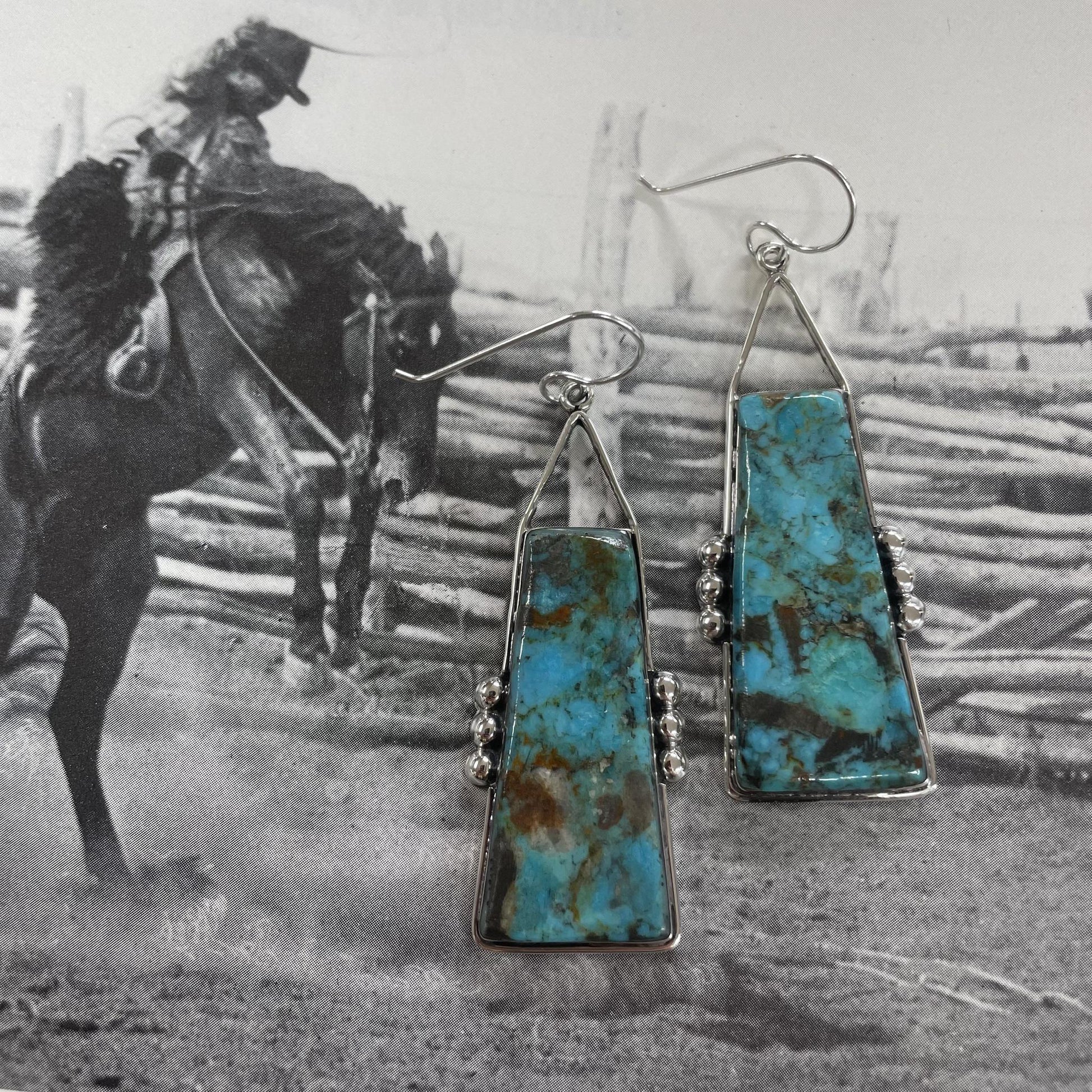 Trapezoid Turquoise Slab Earrings - Boho Sol
